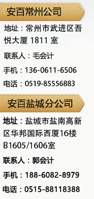 常州公司注冊(cè)代理_常州注冊(cè)公司_常州代理記賬 – 常州安百會(huì)計(jì)服務(wù)有限公司 版權(quán)所有  備案號(hào):蘇ICP備13063512號(hào)-2 技術(shù)支持:安百會(huì)計(jì)